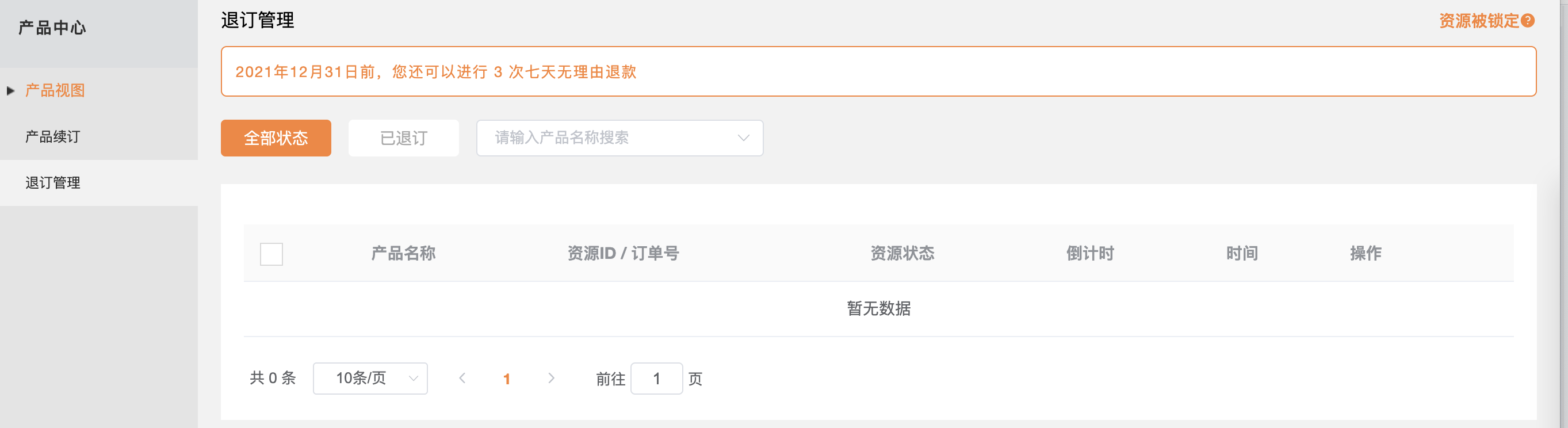 產品支持退訂服務,登錄官網-訂單管理-產品-產品視圖-退訂管理,找到您要退訂的訂單,進行退訂;客戶套餐退訂后,擴展服務也會一起退訂。