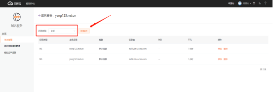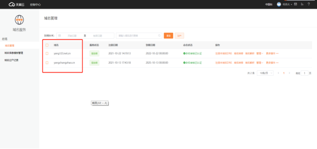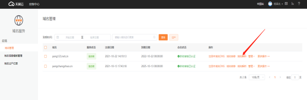 1、在新域名服務產品界面,點擊“控制臺”,進入到域名管理界面,找到需要解析的域名。