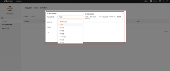 A記錄:將域名指向一個IPv4地址(例如:10.10.10.10)需要增加A記錄。