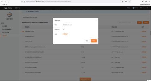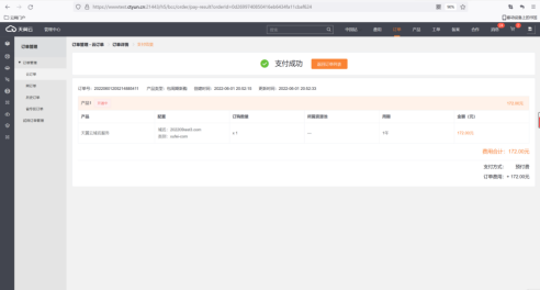 5、完成支付,支付完成后域名預計需要5到7天完成轉入(預計時間僅做參考,重要域名需客戶每天登錄確定轉入是否成功,域名轉入成功后請及時在天翼云域名解析處添加和原解析商相同的解析記錄,做到業務不受影響),轉入成功后請新創建一個模板并進行一次過戶操作。轉入后您可以在新域名服務控制臺的域名管理模塊對您的域名進行管理。