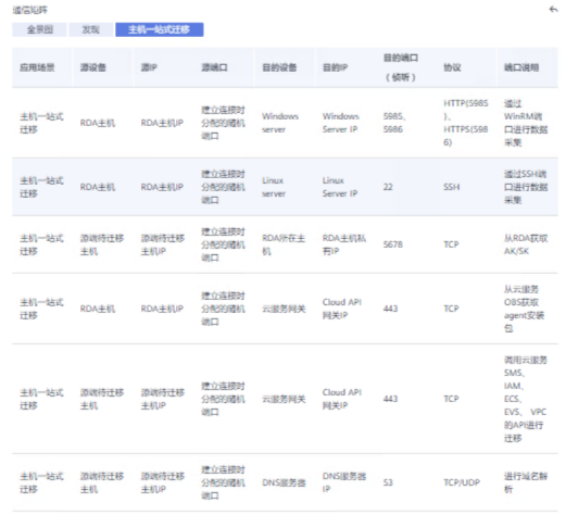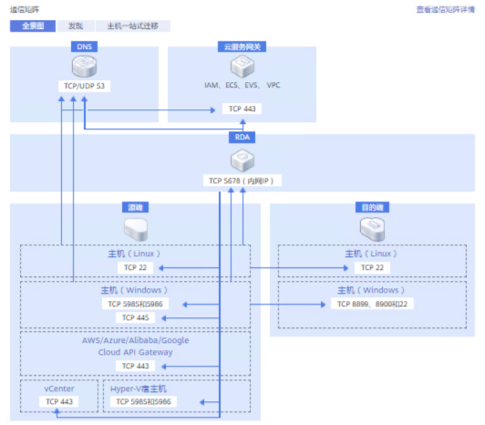 在網絡設置頁簽左側可查看通信矩陣,如圖所示。單擊“ 查看通信矩陣詳情 ”,可切換至參數詳情頁面,如下圖所示。