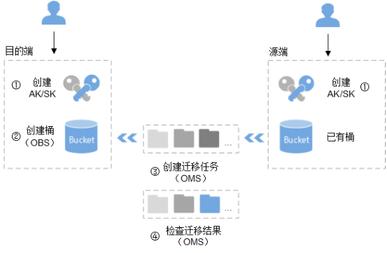 創建目的端桶:在對象存儲服務中創建用于存放遷移數據的桶。