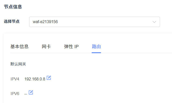 自研池路由表優先級>EIP,因此需要確認WAF所在子網的路由表將WAF管理地址指向IPv4網關。