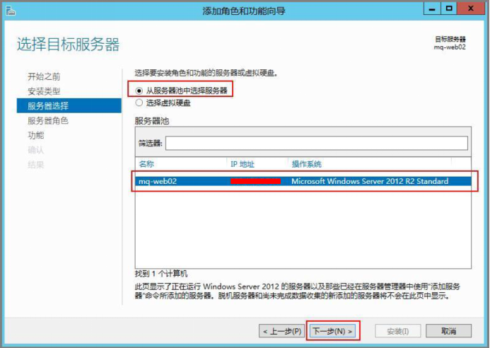 - 選擇需要部署FTP的服務器,單擊“下一步”。