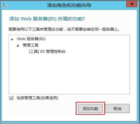 - 選擇“ Web服務器(IIS)”,并在彈出的對話框中單擊“添加功能”,然后單擊“下一步”。