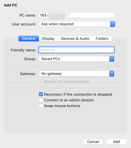 打開遠程工具,添加主機信息;