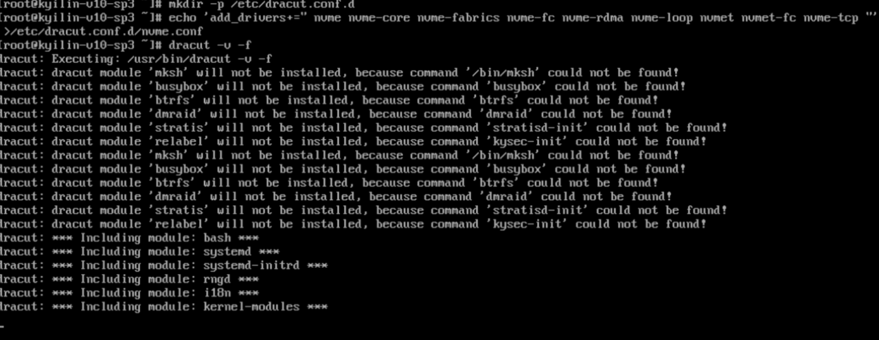 依次運行以下命令,使initramfs支持NVMe驅動。