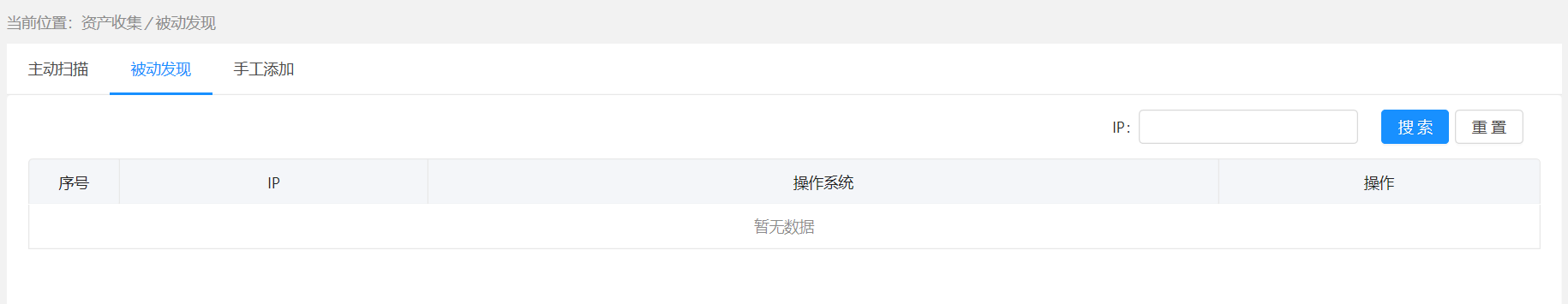 在“資產管理 > 資產收集 > 被動發現”頁面,展示通過對流量分析發現的存活資產及操作系統。
