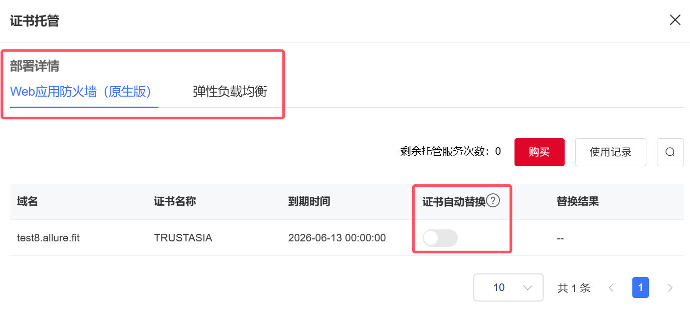 證書托管功能支持您自動替換天翼云上云產品證書的能力。
