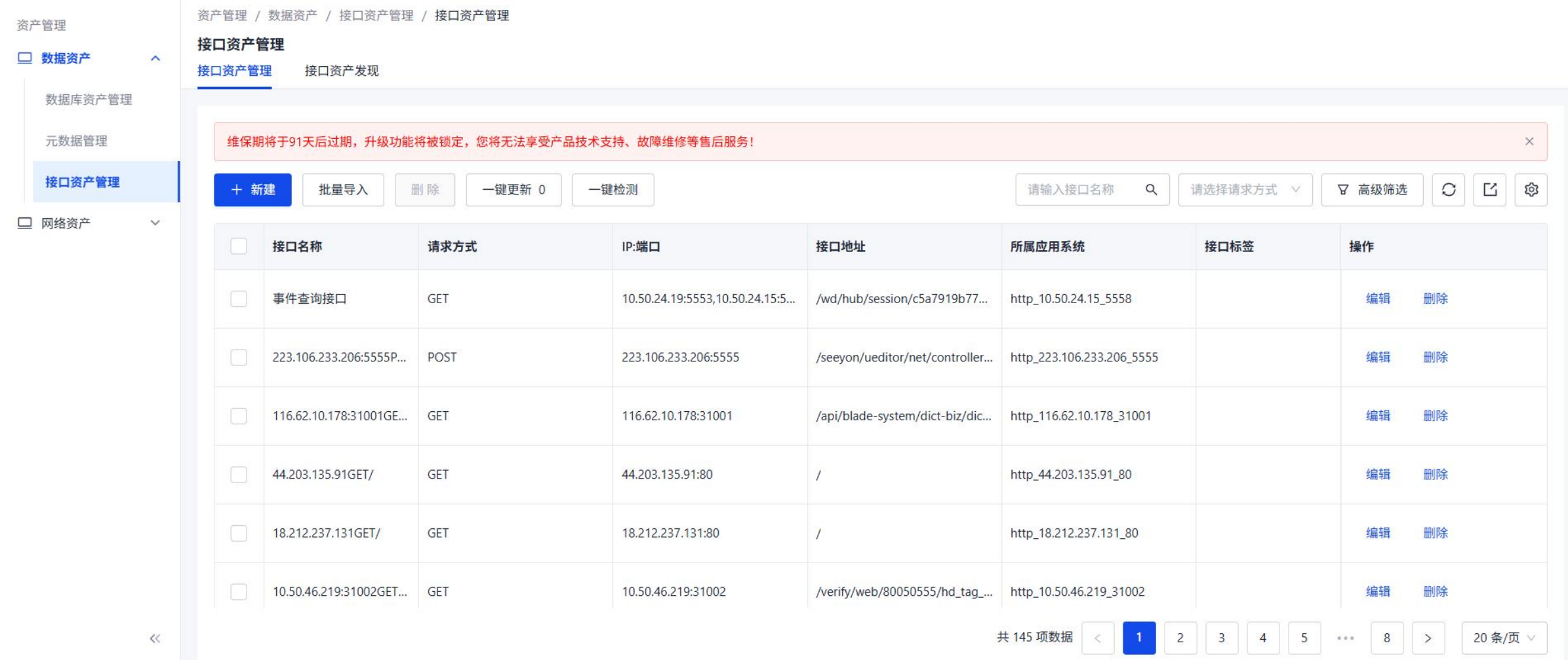 接口資產發現模塊中管理和展示所有從組件中獲取的接口資產信息。