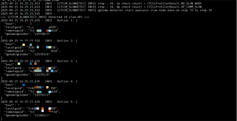 當通信慢時,ctccm會給出慢的QP以及它所對應的網卡對和所在節點。