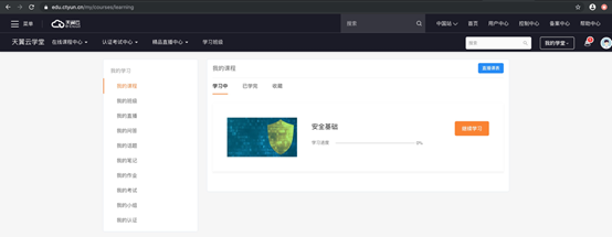 a) 我的課程:此處顯示學員所有已加入的課程和加入的班級內的課程信息(包含學習中/已學完/收藏);
