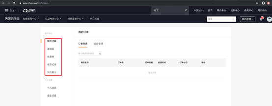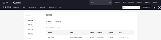 a) 我的訂單:學員可以在此頁面查看自己在平臺的購買記錄,并且進行退款操作,在退款列表中,可以對申請的退款進行查看。