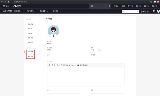 a) 個人信息:此處可編輯填寫用戶賬戶基本信息。