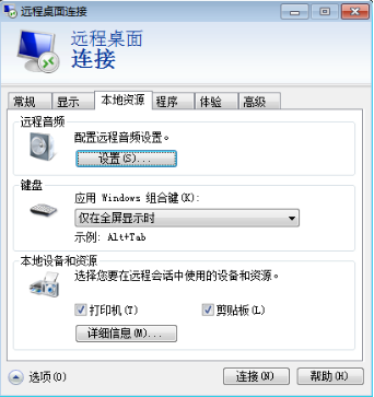 - 在“遠程桌面連接”窗口,單擊左下角的“選項”。