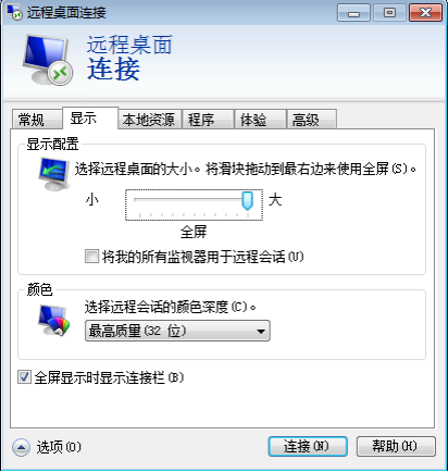 - 分辨率設置完成后,使用MSTSC方式連接彈性云主機。