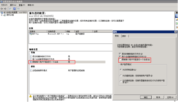 - 雙擊打開,取消勾選“限制每個用戶只能進行一個會話”,單擊“確定”。