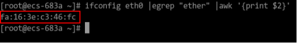 ifconfig eth0 |egrep "ether" |awk '{print $2}'