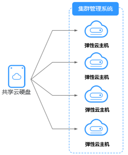 共享云硬盤為云主機提供共享訪問的塊存儲設備,但其本身并不具備集群管理能力,因此需要您自行部署集群系統來管理共享云硬盤,如企業應用中常見的Windows MSCS集群、Linux RHCS集群、Veritas VCS集群和CFS集群應用等。