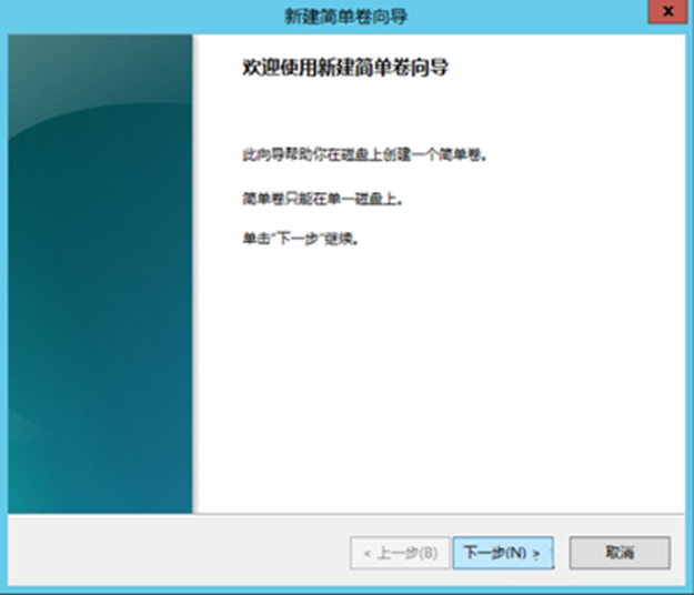 彈出“新建簡單卷向導”窗口,如下圖所示。