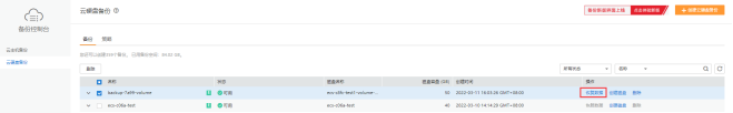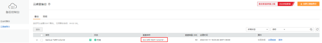 3.執行備份成功后,在“云硬盤備份”頁簽,查看產生的備份狀態為“可用”,表示當前備份任務執行成功。