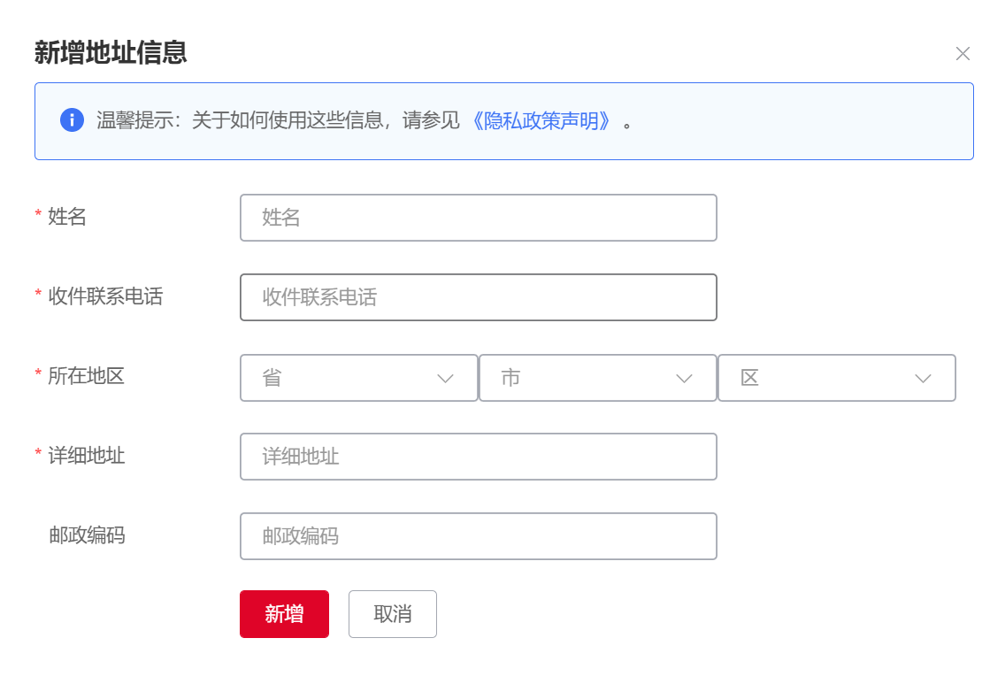 3.添加發票收件地址(僅開具紙質發票時需要填寫,若開具電子發票則跳過此步驟)