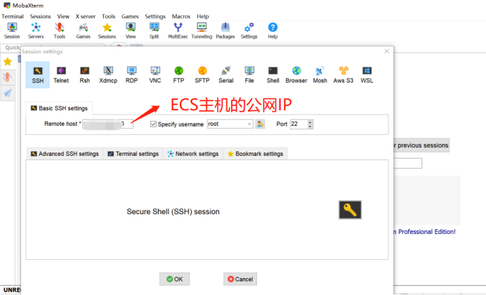 1.新(xin)建(jian)一個到ECS的SSH連接,使用22號端口。