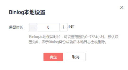 步驟 6 . 在“Binlog本地設置”彈出框中,設置保留時長,單擊“確定”。
