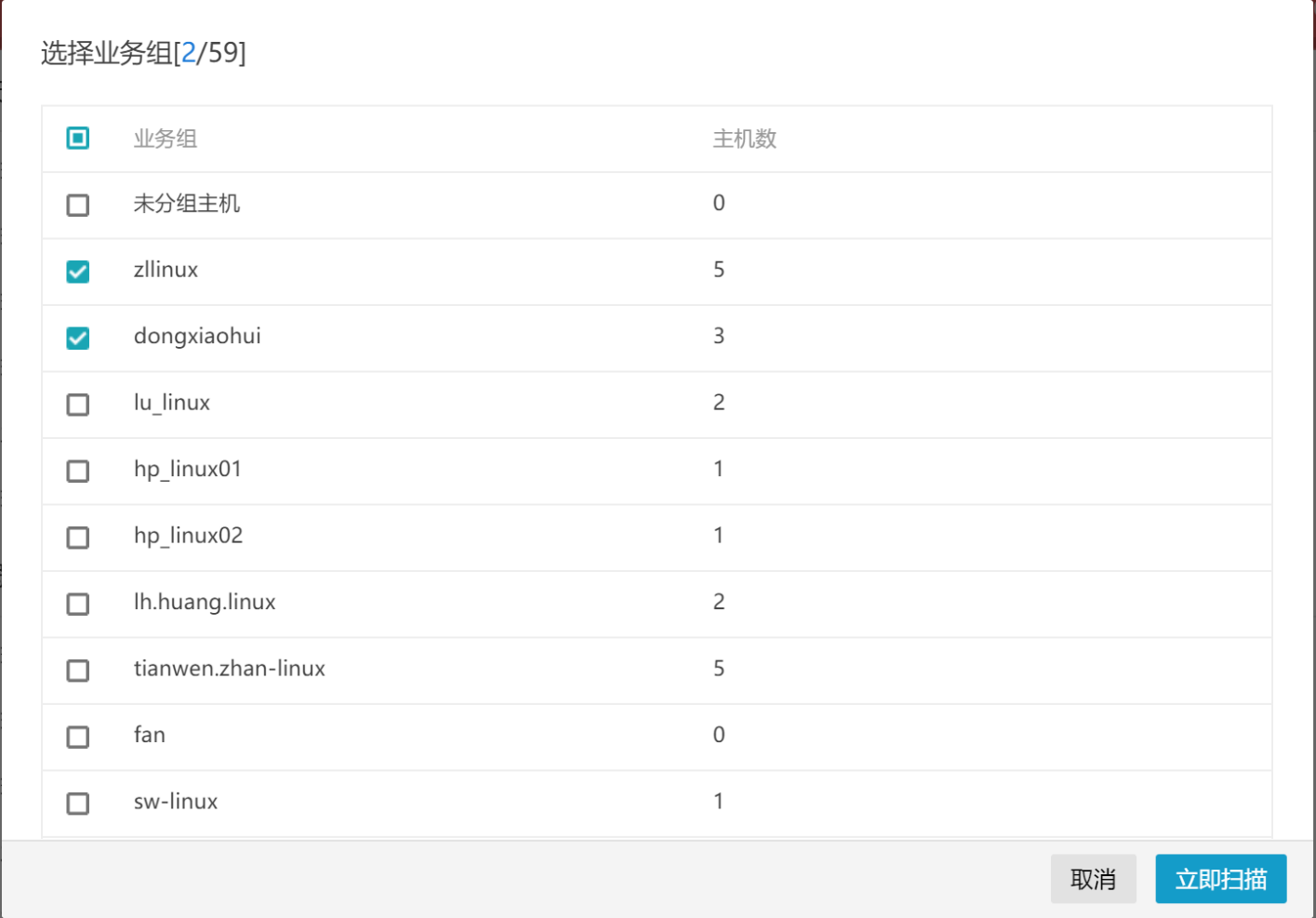 提供以下幾類掃描方式:全部掃描、按業務組掃描、按主機IP掃描。