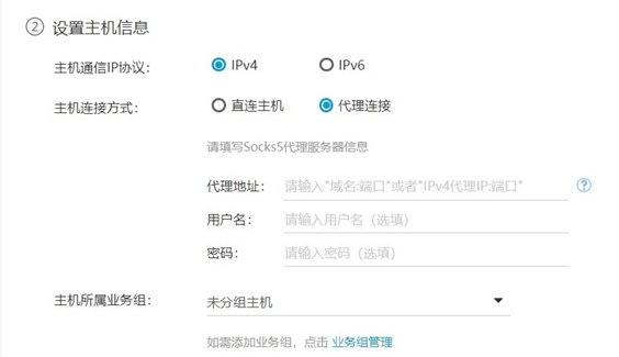 主機所屬業務組:可以選擇安裝 Agent 主機所屬的業務組。可點擊快捷鏈接主機管理,跳轉到業務組界面進行業務組管理。
