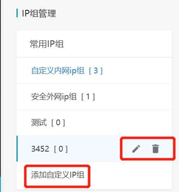 可自定義 IP 分組,并對其進行編輯和刪除,如下圖所示。