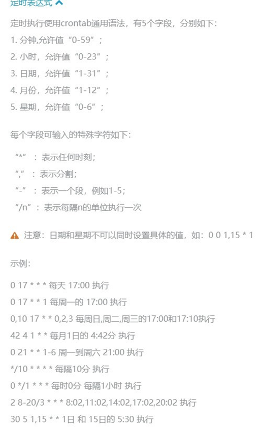 由于掃描時間使用的是crontab 格式,界面上應該即時對其格式進行校驗和顯示,如果格式正確則顯示器所對應的內容,如果不正確 則給出格式錯誤的提示。 | |