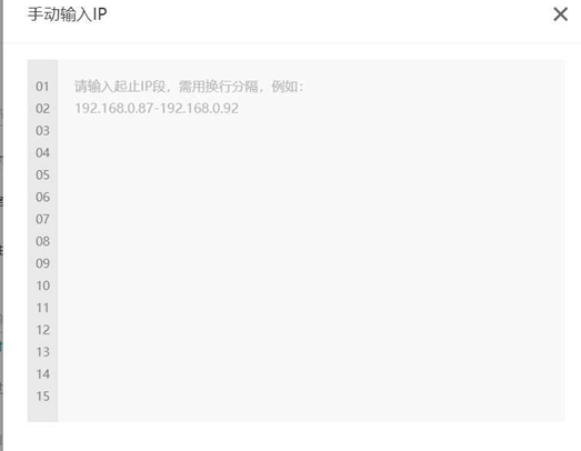 用戶手動設置被掃描的網段。在該情況下,則至少需要設置一個網段,也可以添加多個不同的網段。如果是多個網段,需要注意容錯處理(比如網段之間的重復、IP 地址是否合法等)。