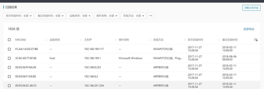 展示所有發現的網絡環境中,未安裝 Agent 的主機資產。可以根據首次發現時間和最后發現時間等字段進行過濾,篩選出想要的未安裝 Agent 主機列表。