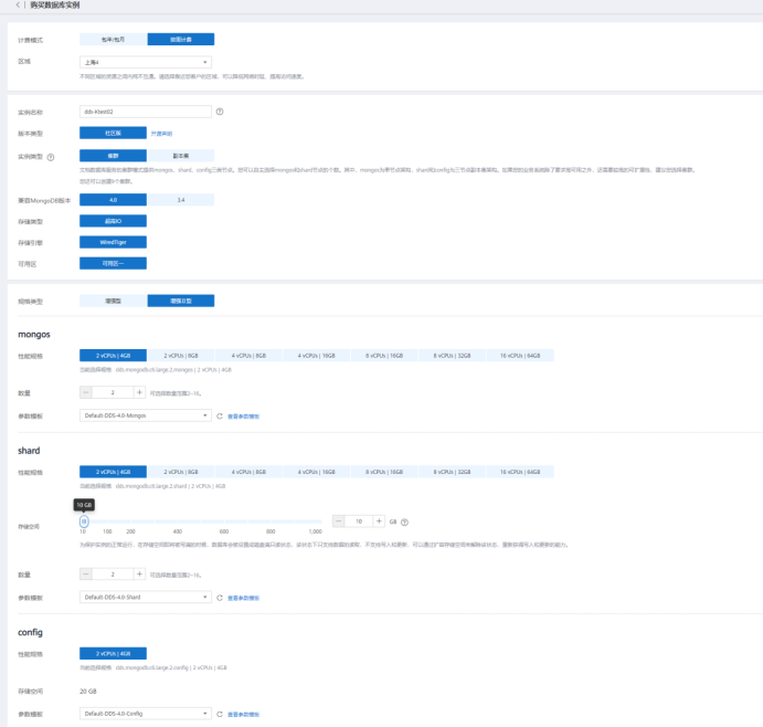 2.選擇“數據庫 > 文檔數據庫服務 DDS”,單擊“購買數據庫實例”。