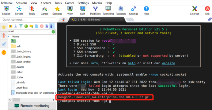 1.本地使用Linux遠程連接工具登錄ECS。“Remote host”為ECS綁定的彈性公網IP。