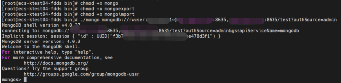 - 執行chmod +x mongo,賦予連接實例的權限。
