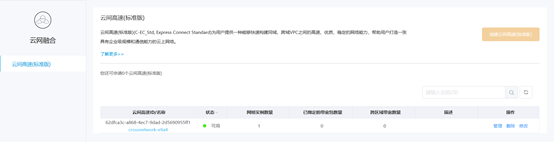 管理云間高速(尊享版): 1、登錄天翼云控制中心; 2、單擊 3、進入云間高速服務界面,點擊【云間高速管理】,如圖所示 說明:線上渠道開通用戶,在云間高速管理頁面,可對云間高速進行補點、變更帶寬、變更路由及退訂等操作。 管理云間高速(標準版): 1、登錄天翼云控制中心; 2、單擊 3、進入云間高速服務界面,點擊【云間高速(標準版)】,如圖所示: