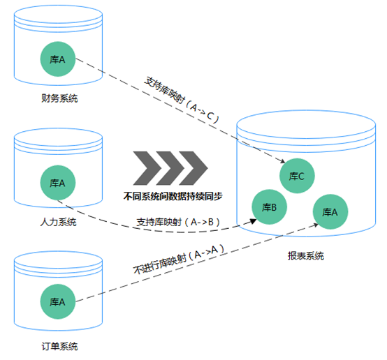 特點:實時同步功能聚焦于表和數據,并滿足多種靈活性的需求,例如多對一、一對多,動態增減同步表,不同表名之間同步數據等。