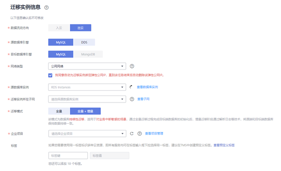 說明目前僅支持RDS for MySQL實例->MySQL數據庫數據庫的全量+增量的遷移場景。遷移用戶