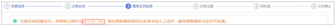 遷移實例創建成功后,可在“源庫及目標庫”頁面獲取DRS遷移實例的彈性公網IP。如圖4所示: