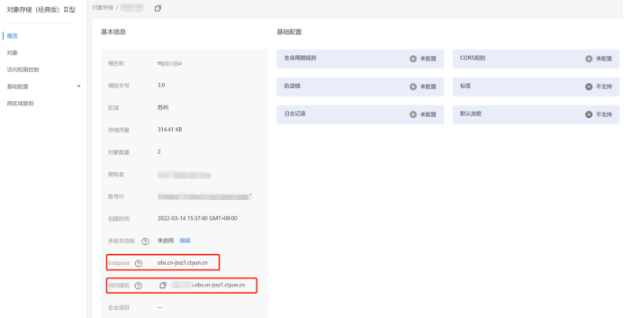 登錄控制臺,點擊桶名稱,概覽里面即可看到。
