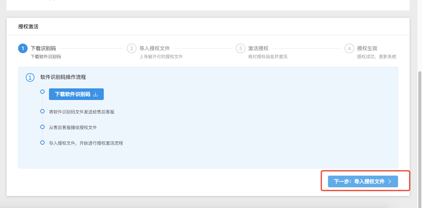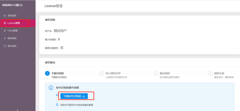點擊左側導航欄的【License管理】,在授權激活頁面點擊下載軟件識別碼。