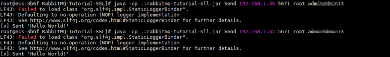 $ java -cp .:rabbitmq-tutorial-sll.jar Send host port user password