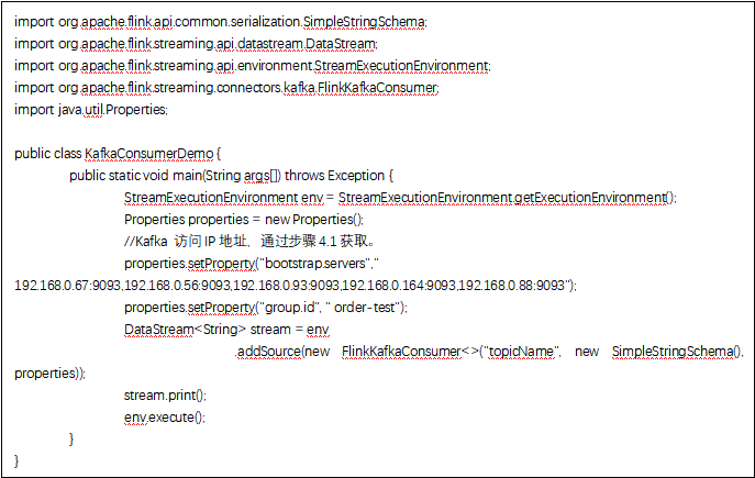 在Flink工程代(dai)碼中(zhong),連接Kafka信息:
