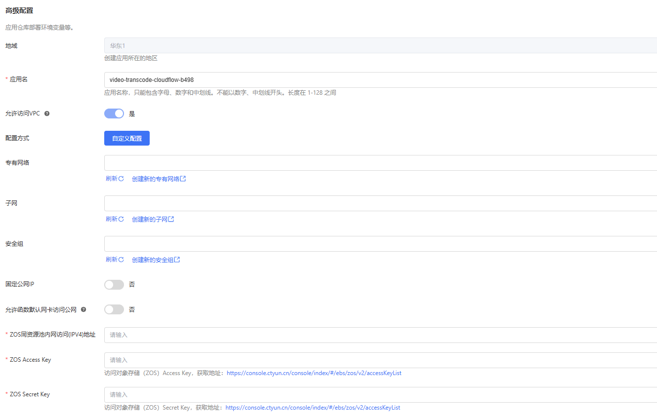 點擊創建應用,隨后函數資源和工作流資源將根據應用名創建完成。