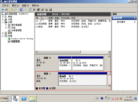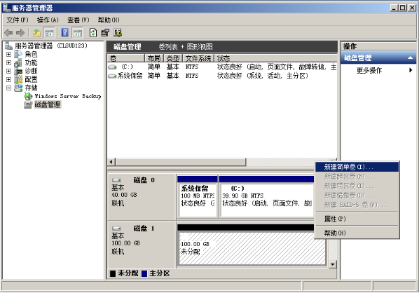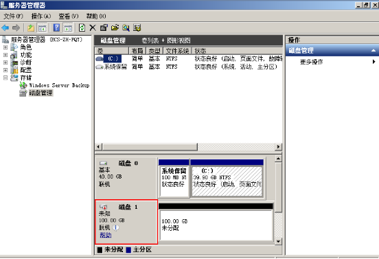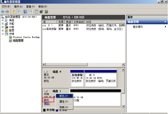 若新增磁盤處于脫機狀態,需要先聯機然后進行初始化。