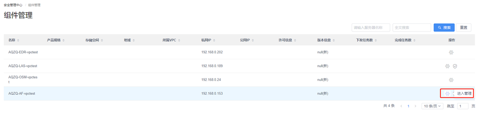 1.從組件列表登錄云防火墻web管理界面(詳見訪問安全組件),在【安全專區】頁面中【組件管理】登錄云防火墻管理。