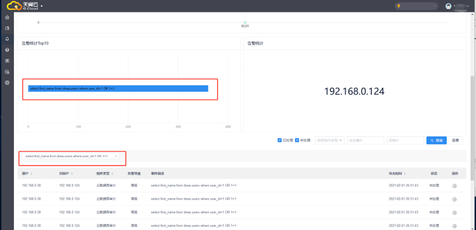 2.點擊具體的告警,自動把告警名稱加入篩選條件。
