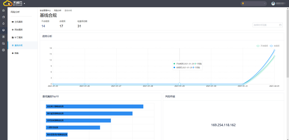 基線檢查功能進行系統安全加固,降低入侵風險并滿足安全合規要求。